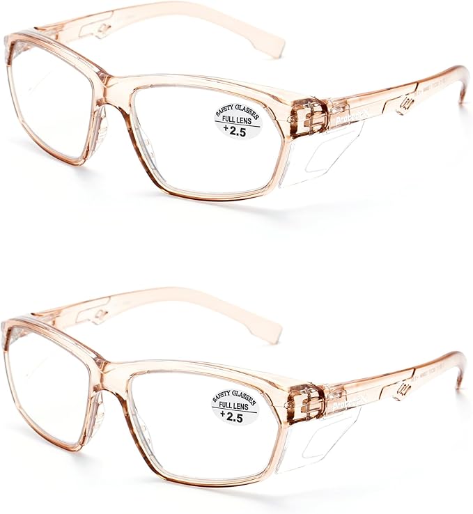 ProtectX Stylish Anti-Fog & Scratch-Resistant Safety Glasses With Readers, UV Protection Goggles, Anti-Impact Lightweight Glasses for Men&Women Cold Brew Reading 2.5-2 Pack