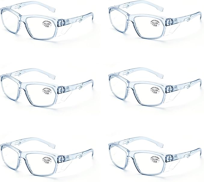 ProtectX Stylish Anti-Fog & Scratch-Resistant Safety Glasses With Readers, UV Protection Goggles, Anti-Impact Lightweight Glasses for Men&Women 2.0-6 Pack,Blue