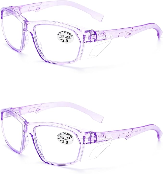 ProtectX Stylish Anti-Fog & Scratch-Resistant Safety Glasses With Readers, UV Protection Goggles, Anti-Impact Lightweight Glasses for Men&Women Lilac Reading 2.0-2 Pack