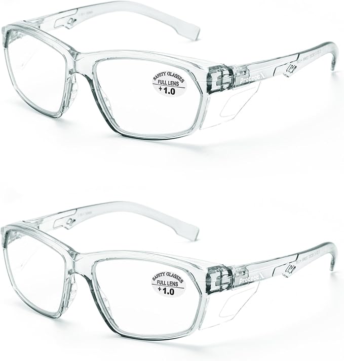 ProtectX Stylish Anti-Fog & Scratch-Resistant Safety Glasses With Readers, UV Protection Goggles, Anti-Impact Lightweight Glasses for Men&Women Charcoal Reading 1.0-2 Pack