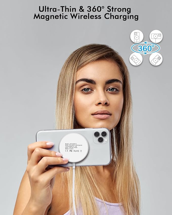 - Mag-Safe Wireless Charging Pad: The magnetic wireless charger is designed specifically for iPhone. Precision magnets attach to your iPhone 16/ iPhone 15 for fast and efficient charging, ensuring that your device is always powered up quickly and firmly attached with the fast magnetic charger pad