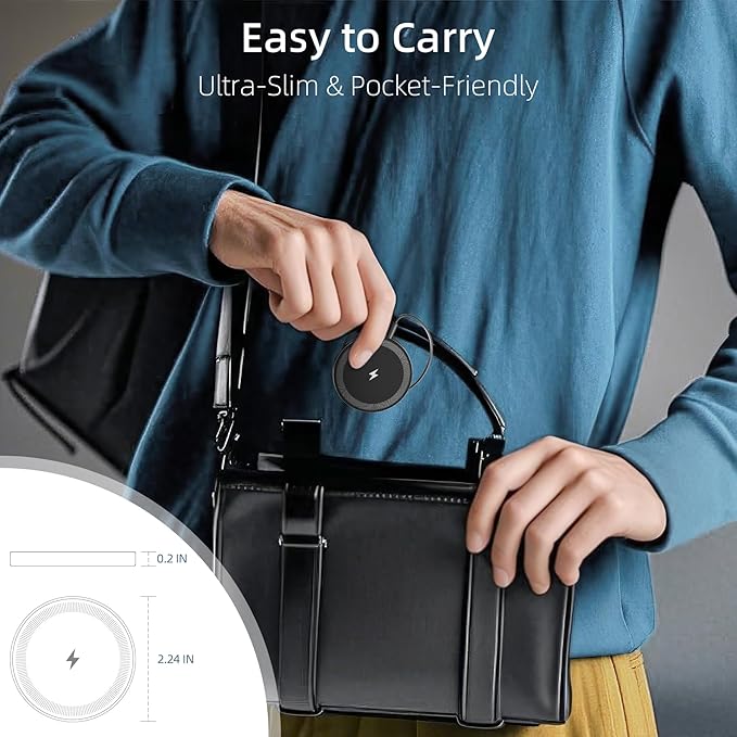 - Ultra-Slim & Pocket-Friendly Design: Only 0.2in thick, this slim disc charger slips easily into your pocket, purse, or laptop sleeve. A perfect travel companion for daily commutes or weekend getaways.
