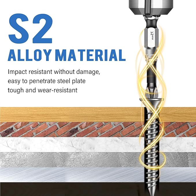 - ⚙️【Shock Resistance】Made of high-quality rust-proof alloy material, these drill bits have excellent performance, impact resistance and wear resistance. It is designed for high-speed torque applications, helping to prevent the head from breaking or being damaged in situations where sudden and powerful rotational impact forces are generated.