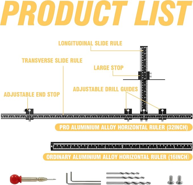 - 【32 inches &16 inches in Two Sizes】We upgrade our cabinet hardware jig to meet various sizes of handles, lets you easily adjust drilling distances to install different sizes of handles, knobs and pulls on kitchen cabinet doors and drawers.