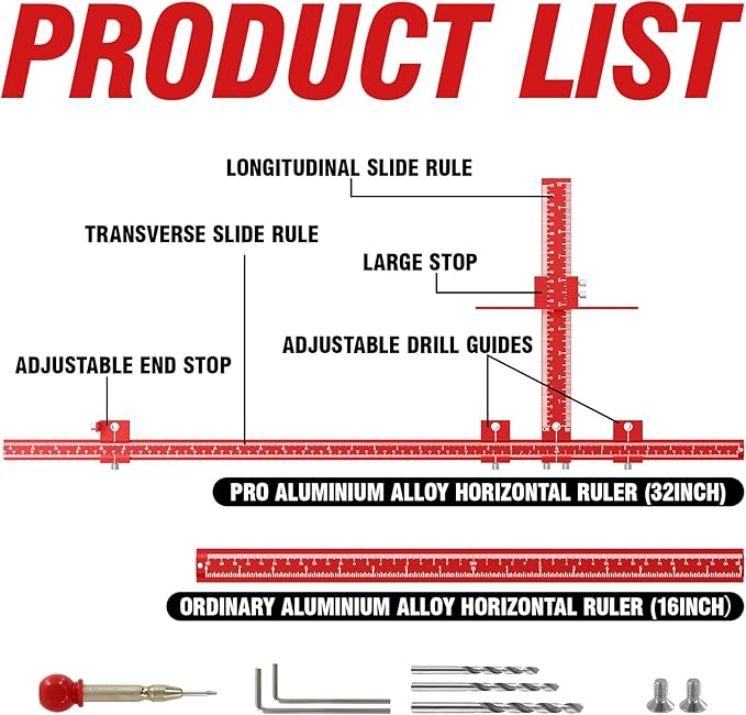 - 【32 inches &16 inches in Two Sizes】We upgrade our cabinet hardware jig to meet various sizes of handles, lets you easily adjust drilling distances to install different sizes of handles, knobs and pulls on kitchen cabinet doors and drawers.
