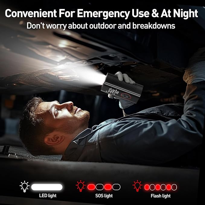 - Multifunctional Tire Pump: Portable air pump serves as a versatile emergency tool, with preset mode, easy to operate, 5 modes as car pump, bicycle pump, motorcycle pump, ball pump, and custom mode. Our electric tire pump has 3 modes of LED lights: constant, SOS and flashing to help with tire inflation and dark conditions. With USB ports, turning it into for your electronic device