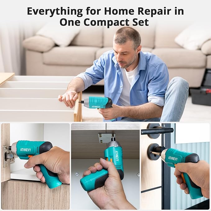 - 【All-in-One Set – Ready for Any Task】Whether you’re a homeowner, DIY enthusiast, or repair technician, this complete kit has everything you need: 1 cordless screwdriver, 24 short bits, 3 extended bits, 2 drill bits, 1 bit holder, 1 flexible extension shaft, 1 USB-C cable, and a user manual. One set covers assembly, repair, and creative projects—no extra purchases required.