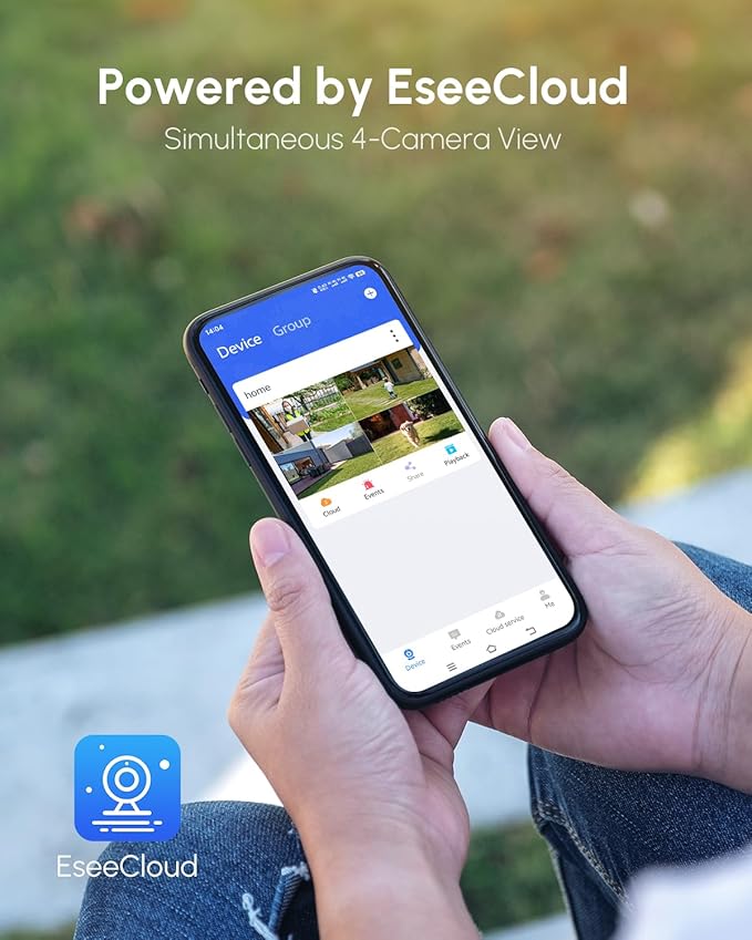- [Smart AI Human Detection & Multi-View] Advanced AI algorithms identify people more accurately by analyzing body shapes and facial patterns, minimizing false alarms. Through the free EseeCloud app, you can view up to 4 camera feeds simultaneously, receive instant updates, and grant shared access to family members to keep every part of your property under watch