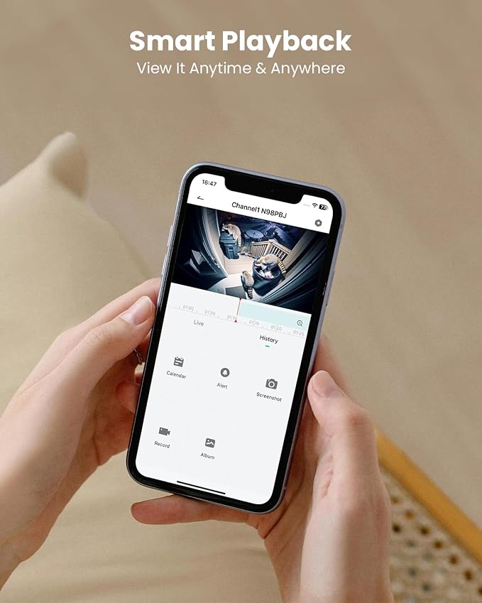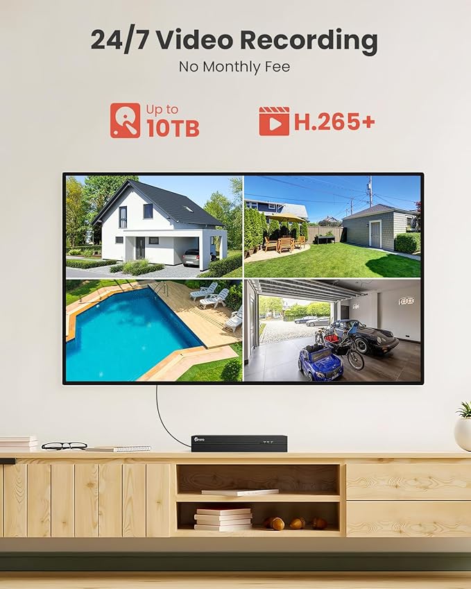 - 24/7 Continuous Recording & Smart Playback:The camera ensures 24/7 coverage. With support for up to 10TB HDD, no need to worry about running out of the storage. Even you are not at home, you still can remote access or playback via your phone to check what happened at your home at anytime, anywhere.