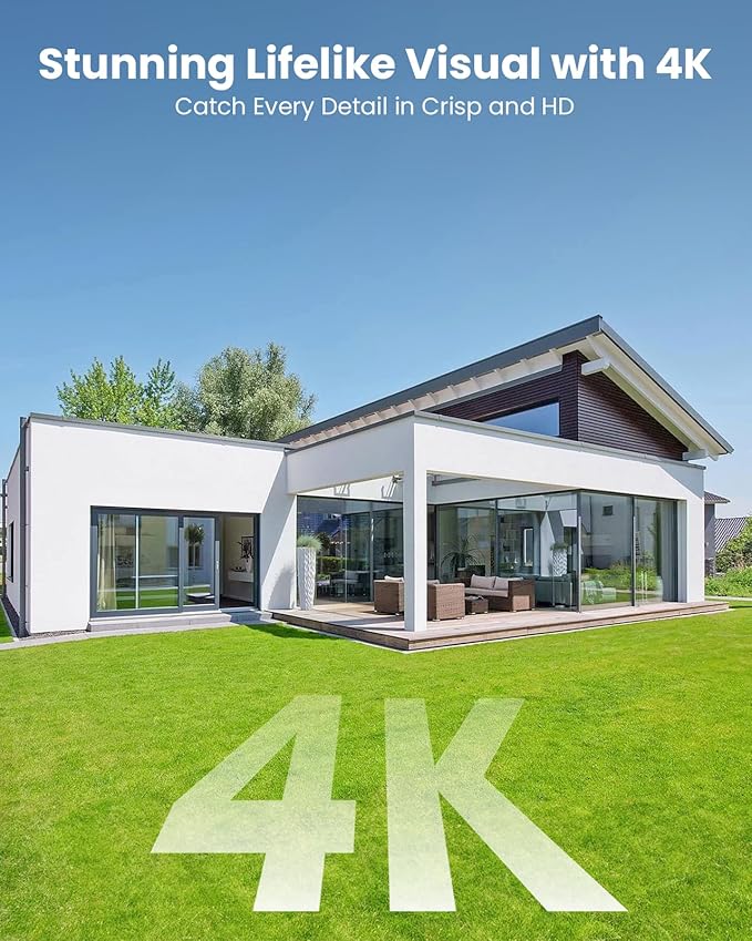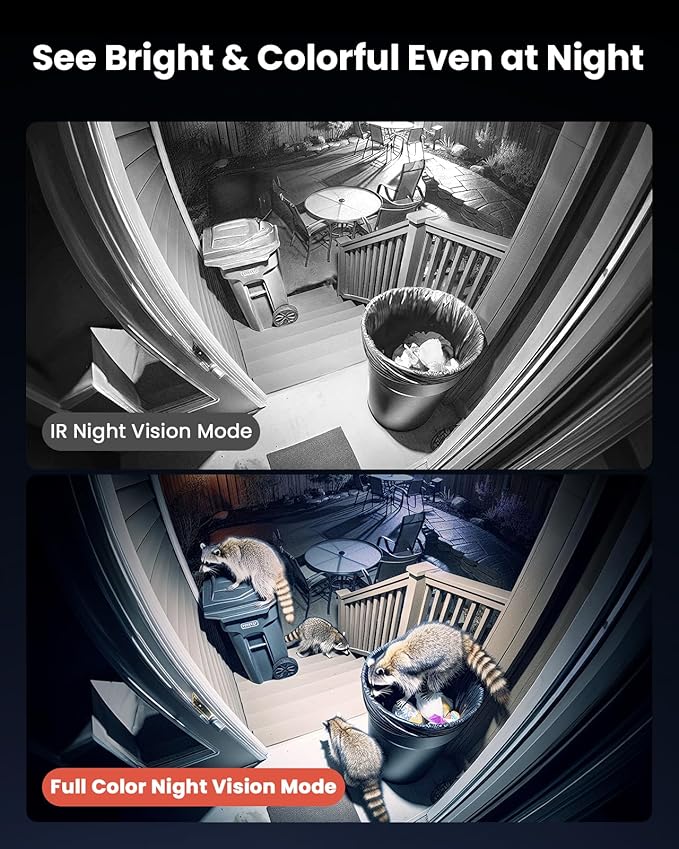 - 4K Crystal-Clear Video & Vibrant Night Vision: Equipped with 3pcs high-efficient dual-core lights, effortlessly switch to color mode from black&white night vision upon event trigger. Night vision extends up to 100ft, with full-color visibility at 50ft. Sharply reveal all details.