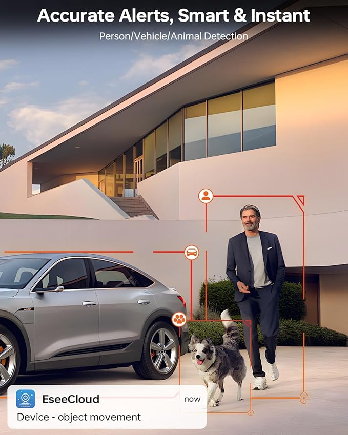 - Remote intelligent alert, active guarding: The wireless security camera system supports 5G/2.4Ghz, mobile APP to check the situation of yard and door at any time, even if you are traveling, you can control it with one key. Human body movement detection, found abnormal instant push message, but also voice shouting drive away