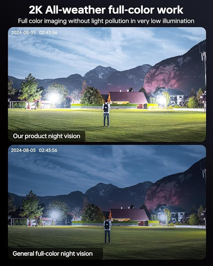 - Night turns into day in an instant: Our solar powered outdoor camera F1.0 lightless imaging technology delivers color images even in low-light environments, leaving no place for darkness to hide, more peace of mind with night guarding