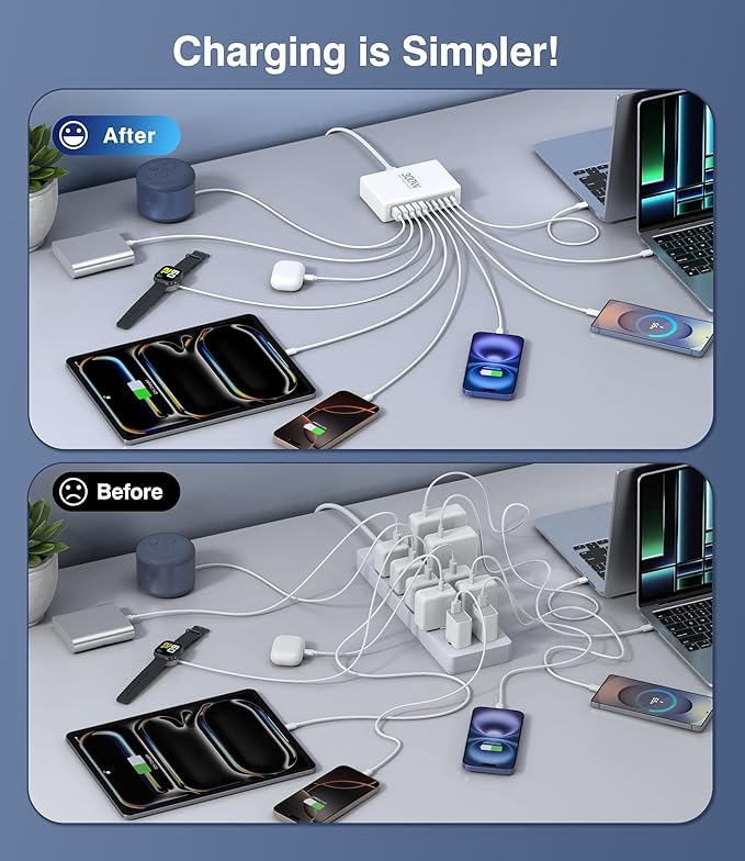 - 【Universal Compatibility】:ldeal as a charging station for multiple devices, this usb c hub works with and is compatible with MacBook Pro 17 16, 14, 13, MacBook Air, Dell, iPhone 17, 16, 15 Pro/14 Pro Max/13, Samsung Galaxy S25 Plus/S24 Ultra/S23/S22, Moto G51/Razr 50 Ultra, OnePlus 13/Ace 3/5Pro, iPad Pro, iPad Air Series, AirPods Pro, Apple Watch, Switch, Steam Deck and more. Whether you need a super fast charger usb c for your phone or a reliable charger for your laptop, this station has you covered