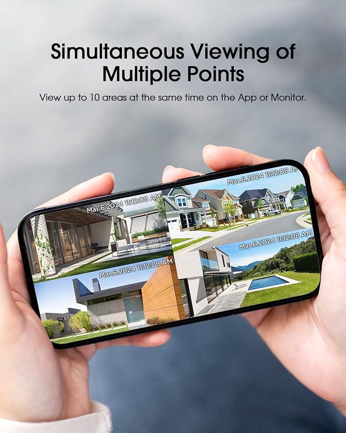 - Expandable System, No Monthly Fee: Our home security camera system includes 500GB of local storage(Support Up to 6TB) and supports up to 10 cameras. No subscriptions required—your footage stays private and accessible without hidden fees.