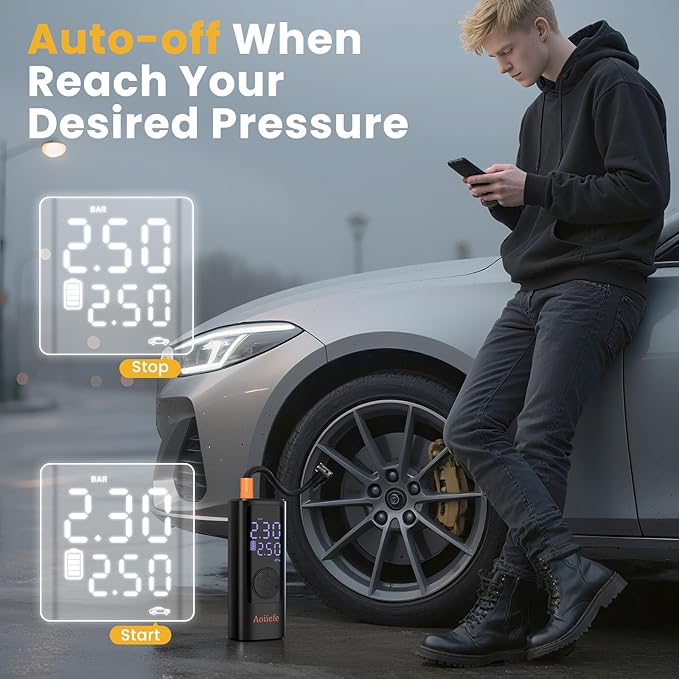 - Digital Precision & Auto-Shutoff – Features a clear digital PSI gauge and preset pressure settings. Automatically stops at your desired pressure to prevent over-inflation, ensuring safety and accuracy.