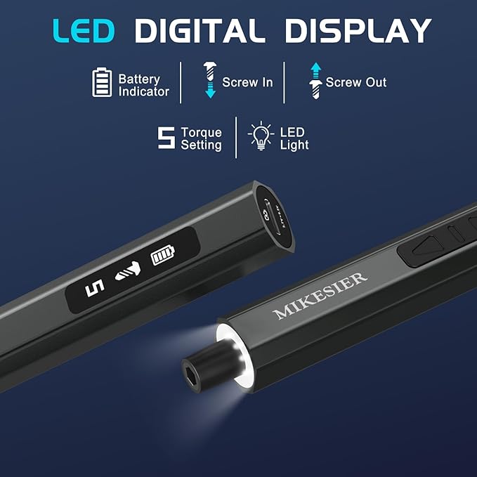 - Smart Digital Display: The mini screwdriver set customize mode switch with 5 torque settings, the electronic display screen provides real-time information on gear level and power battery for personalized styling. This automatic screwdriver LED display forward and reverse rotation modes can also be easily monitored, making every task more efficient