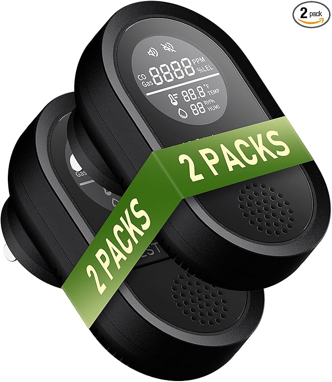 8-in-1 Natural Gas Leak Detector & Carbon Monoxide Detectors - Monitor CO, Natural Gas, Temperature & Humidity HD Screen with Gas & CO Monitor Alarm Sound Warning for Home, RV, Apartment Safety (2)