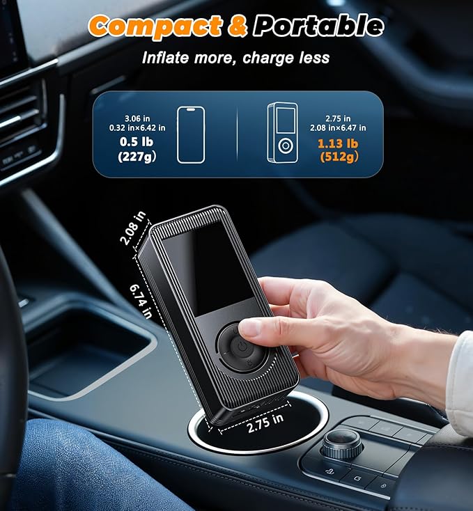 - 【Smart Control – Real-Time Pressure & Auto Shutoff】Take the guesswork out of inflation. This air pump for car tires includes an LCD screen and automatic shutoff to hit the exact PSI without overfilling. Intuitive and efficient, it’s the air compressor portable that beginners and pros alike can trust.