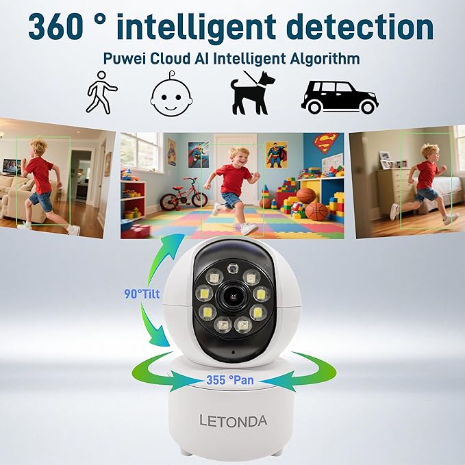 Security Camera WiFi Pet Camera White 4MP HD Indoor Surveillance System with Night Vision Motion Detection Mobile App Control Humanoid Detection/Mobile Tracking/Mobile Alarm (1)