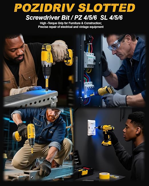 - [Versatility Unleashed] Includes PZ1, PZ2, PZ3 bits for electricians, plus #1, #2, #3 Phillips and SL4–SL6 slotted sizes. Tackle panels, terminals, and breaker boxes without guesswork.
