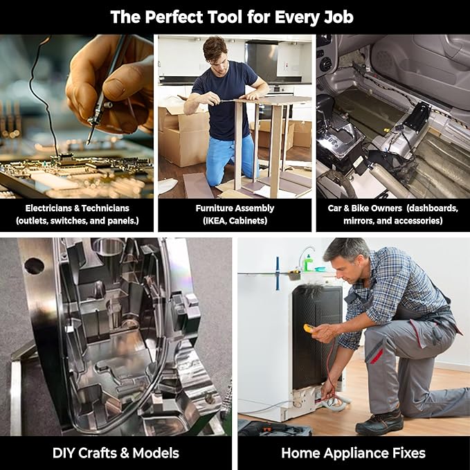 - Reliable for Professionals & DIYers:Trusted by electricians, hobbyists, and homeowners for appliances, electronics, Ikea furniture, and more. A must-have screwdriver set.