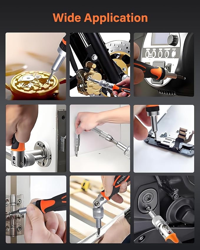 - 【High-Quality】The ratcheting screwdriver set are made of high-density chrome vanadium steel. Provides durability and corrosion resistance,can withstand higher torque. Whether it's tightening screws, assembling furniture, or performing repairs, this set is up to the task, providing reliable performance for years to come.