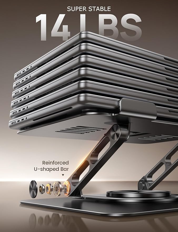 - 360° Rotation:The laptop riser base supports 360° rotation, allowing you to share your screen, making it perfect for conference presentations, team collaborations, client demonstrations, and more. There's no need to move the entire laptop; simply rotate the screen to achieve more efficient communication.