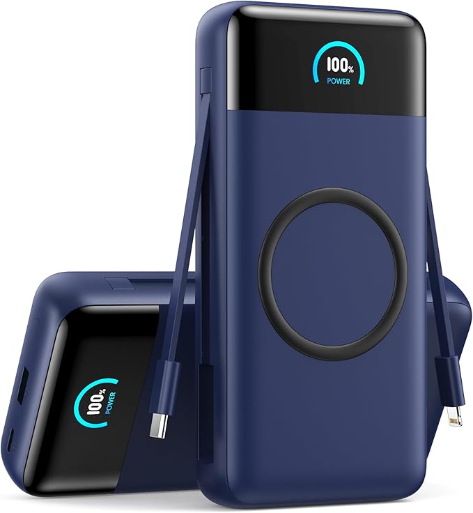 - 【Five Devices, One Charge】Designed for charging multiple devices, this USB C battery pack includes 5 Outputs and 2 Inputs: USB-A port output, Type-C port input/output, integrated Type-C cable input/output, iOS cable output and 15W(Max) wireless charging output, can fast charge up to 5 devices at once without affecting the charging speed, say goodbye to tangled cables and bulky chargers, enjoy the convenience of this 5-in-1 power bank!