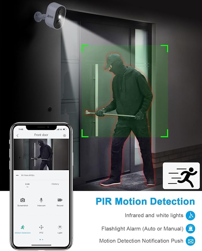 - Intelligent PIR Motion Detection & Instant Alerts: This outdoor wireless security camera has a built-in infrared motion detection sensor, it can clear analysis and recognition person, vehicle, pet and package. No matter whether you are at home, The AI PIR sensor will be triggered in real time once the outdoor security cameras detect motion, at the same time, the notification will be pushed to your phone via the app.