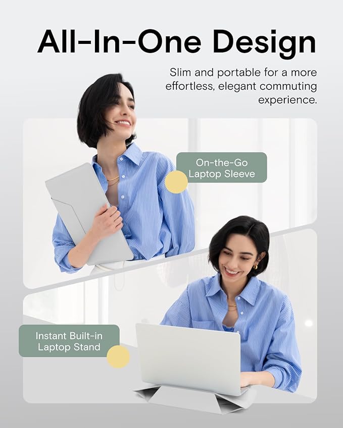 - Two Angles Laptop Sleeve Stand: Instantly convert this sleek Laptop Sleeve into a sturdy Laptop Stand. Features dual-angle adjustment (15° for typing; 25° for viewing) to elevate your screen, reducing neck/wrist strain from poor posture. More than a protective Laptop Bag, this ergonomic Computer Bag works anywhere – transforming your carry sleeve into a pain-relieving workstation.