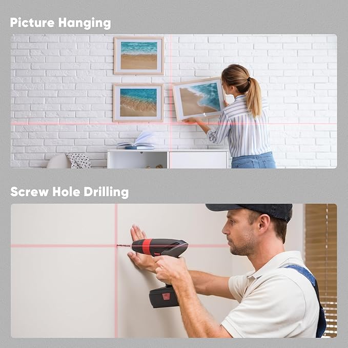 - 【Multi-Functional Cross-Line Laser Level】 This innovative device combines a laser distance meter with a cross-line laser level, featuring three laser heads for vertical, horizontal, and cross-line projections. Perfect for hanging pictures, installing tiles, or framing walls, the bright laser lines remain clearly visible even in well-lit conditions. The added functionality eliminates the need for multiple tools, saving time and improving efficiency on any job site.
