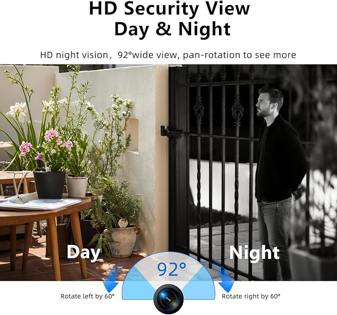 - HD Clarity Video, 92°Wide & Pan Rotation: Enjoy crystal-clear 1280P video with a 92° wide-angle lens and 60° left-right pan via your smartphone. See more of your doorway in real time. Night vision up to 10 meters ensures clarity, even in pitch dark.