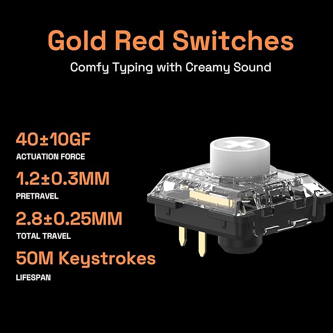 - Creamy & Silent Typing Feel — Custom low-profile switches (30gf–50gf actuation, 1.2mm pre-travel) deliver effortless, lightning-fast input without fatigue. Enjoy a smooth, silent thock, making it a perfect silent keyboard for work, while a 50M-keystroke lifespan ensures reliable performance for years.