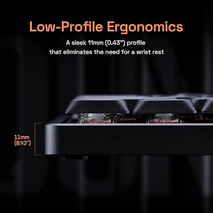 - Ergonomic Low Profile Comfort — Magi75 wireless mechanical keyboard features an optimized 75% form factor for a clean, efficient workspace. Ultra-slim switches and low-profile keycaps keep wrists aligned and reduce fatigue, with a sleek 11mm (0.43") front profile that eliminates the need for a wrist rest—perfect for long work sessions, gaming marathons, or clean minimalist setups.