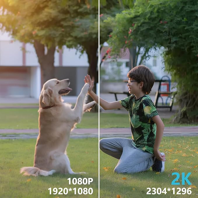 - [Sharper Details, Wider Coverage] Capture every corner with 2304×1296 Ultra 2K resolution—4× clearer than 1080P. A 350° horizontal and 90° vertical rotation range ensures full-room or full-yard visibility, while advanced color night vision delivers accurate footage even at night.