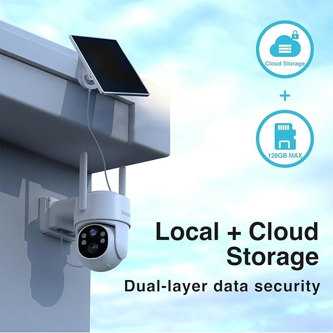 - [Worry-Free Power Supply] Built with a 2W solar panel and rechargeable battery, the camera operates continuously for up to 365 days. IP65 waterproof housing makes it reliable through rain, snow, or heat—perfect for front doors, garages, backyards, or shops.