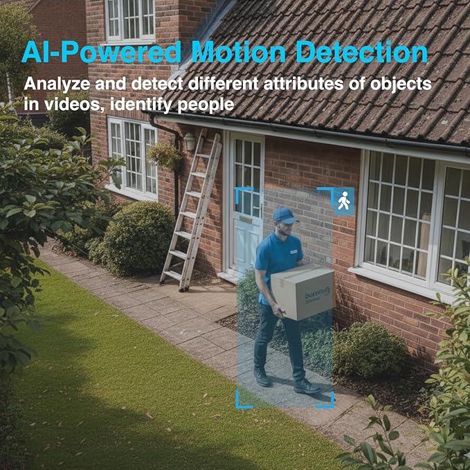- [Smarter Motion Alerts] AI-enhanced PIR detection accurately recognizes people, vehicles, pets, and packages. Get instant phone alerts that filter out false alarms, so you stay informed only when it matters most.