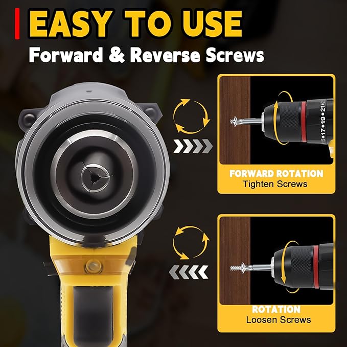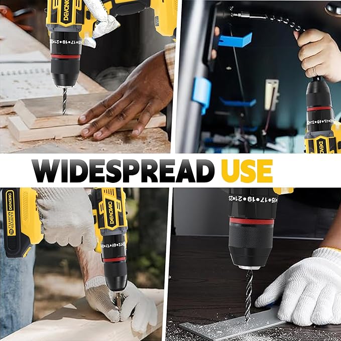 - 【1/2'' Chuck and Impact Mode】DEVONIC cordless drill kit comes with 1/2" (13mm) metal chuck, which provides you with stronger bit retention than ordinary plastic chucks on the market! And upgraded with 3 working modes (Screwdriver, Drill and Impact Hammer), the latest addition of impact function, which doubles the performance of the machine compared to the regular version, making your work easier.