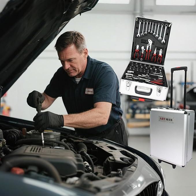- ๐ PORTABLE PROFESSIONAL TOOL CHEST WITH ROLLING CASE: Built tough like a husky tool box or milwaukee tool box. Our heavy-duty tool box with drawers (4 deep drawers + molded top case) features smooth-gliding wheels & a retractable handle. Easily transport your tools set anywhere โ the ultimate portable tool box set for homeowner or mechanic.