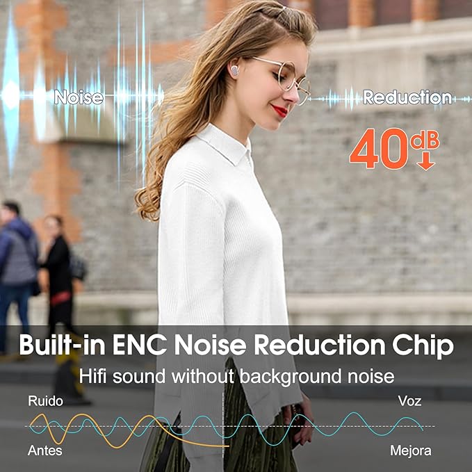 - 40hrs Playtime and LED Power Display: The powerful battery in these true language translating headphones keeps you listening all day, The digital LED power display on the outside of the case facilitates easily manage of power, and the battery capacity of the charging case provides 4 full charges for wireless buds, providing 7 hours of listening time on a single full charge, and let you enjoy more than 40 hours music time. Equipped with Type-C charging cable, charging is faster and safer.