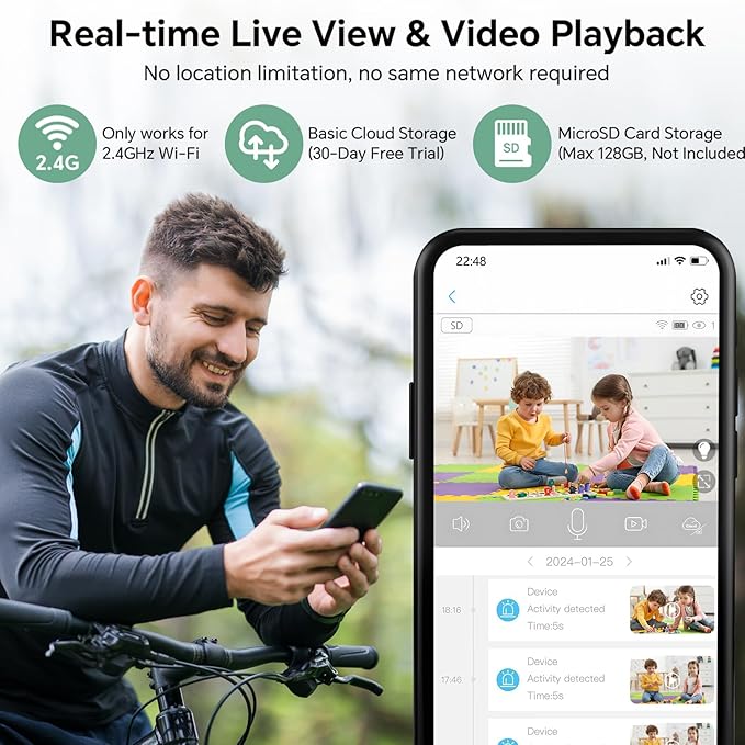 - Secure Cloud Storage/SD Card Storage:This outdoor cameras wireless will protect your unforgettable moments effortlessly!Enjoy flexible storage options with cloud storage (30-day free trial) and support for local SD card storage (up to 128GB,not included)