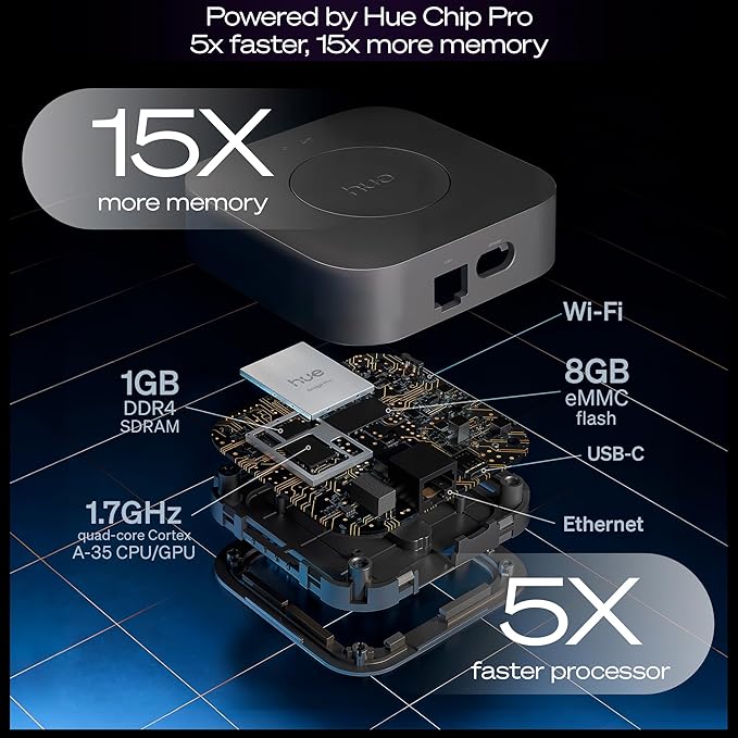 - MORE SPEED – Featuring the new Hue Chip Pro with ultra-fast processing speeds of 1.7 GHz and a quad-core Cortex-A35 CPU for faster response times & the ability to run complex algorithms & AI features