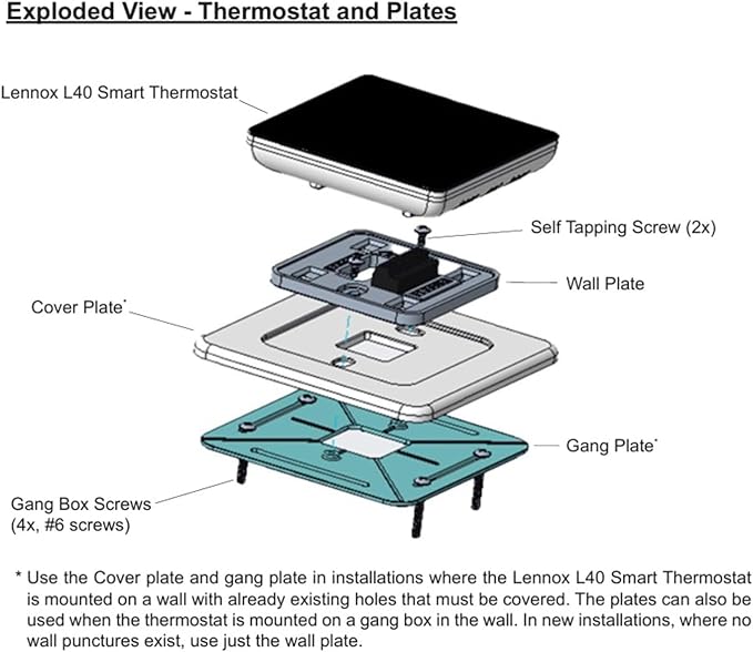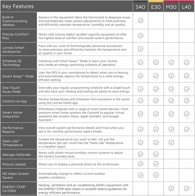 Lennoxe L40 Dual Fuel 1 Stage Heat 1 Stage Cool Touchscreen Smart Programmable WiFi Thermostat with Auxiliary/Emergency Heat Options