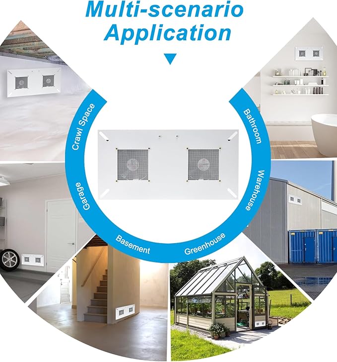 - Versatile Applications: Crawl space vent fan has basically been made to control the humidity and temperature levels of crawl space, basements, garage, grow tents and many other scenarios. You'll be surprised how easy it is to install, just fasten the included screws where you need to install it.
