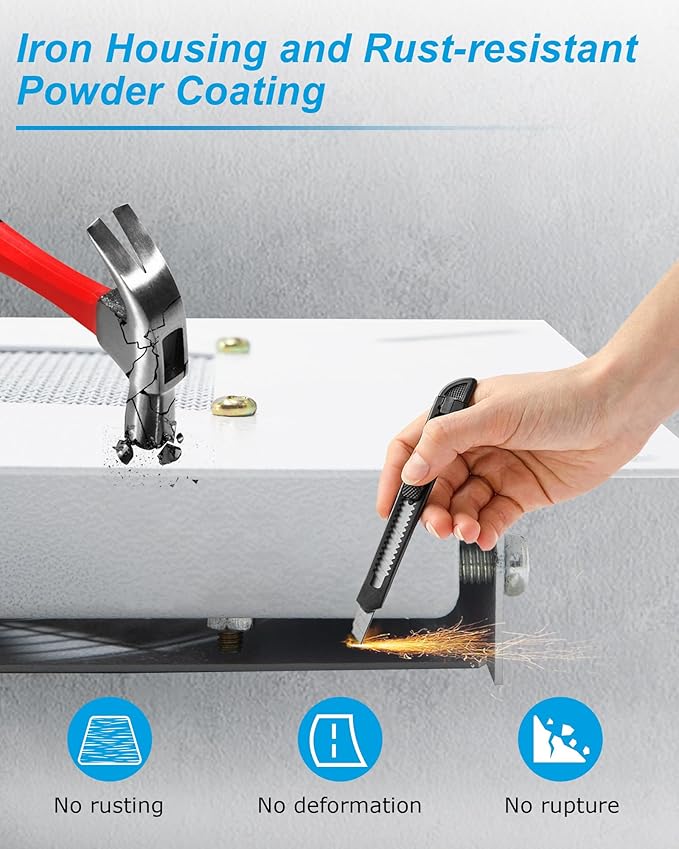 - Double protection: Crawl Space ventilation fan comes with iron protective cover with alloy lock, which can withstand 300 pounds of impact. It Blocks cold air- helping prevent frozen pipes, while providing privacy. Aluminum Screen prevent particulates from entering the machine. Providing double protection for your crawl space.