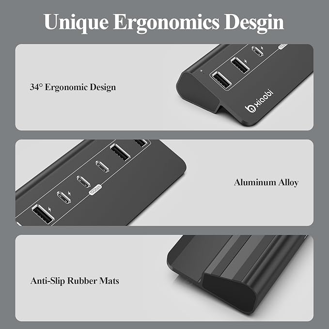 - 【Unique Ergonomics Desgin】The usb c splitter is made from solid aluminum alloy, giving it a sturdy feel and helping it stay cool even during heavy use. Its ergonomic design makes it easy to use, while the non-slip rubber base keeps it firmly in place and protects your desk from scratches. With a clean, modern look and practical features, it’s a hub that’s made to look great and work even better.