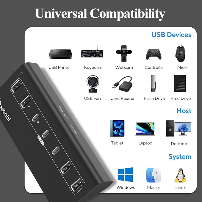 - 【Wide Compatibility】This usb hub for pc works seamlessly with Windows, macOS, and Linux—no drivers required, just plug and play. It comes with a USB-C to USB-C cable and an attached USB-A adapter, so you can easily connect to a wide range of devices, including USB-C or USB-A laptops, desktops, and even OTG-enabled phones and tablets. One cable, endless possibilities.