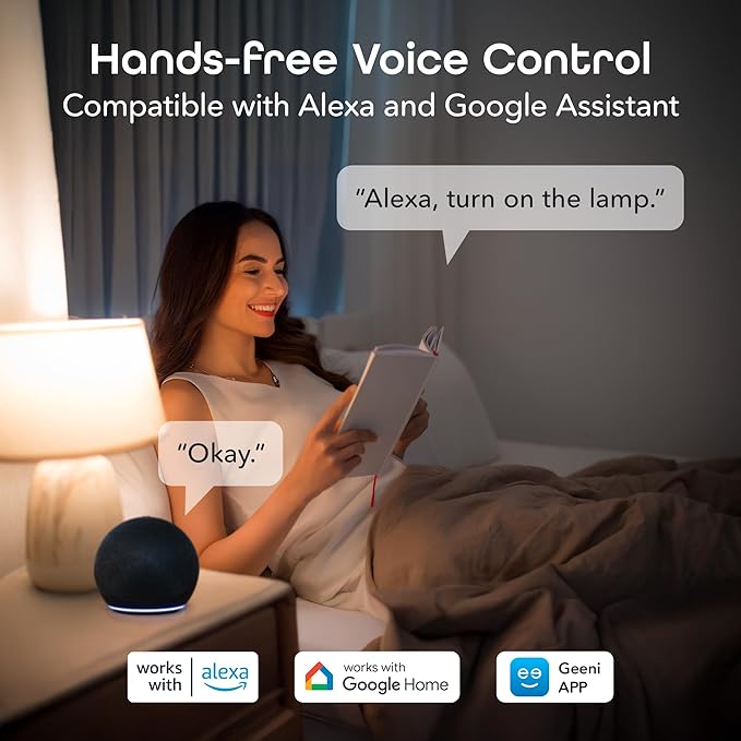 - Remote & Voice Control: Manage your lighting from anywhere with the Geeni app or hands-free using Alexa and Google Home voice commands. Easily dim, turn on/off, and schedule this color-changing light bulb from the comfort of your bed or sofa.