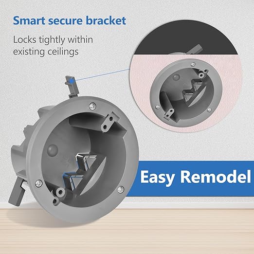 - Easy Installation: With built-in clamps, this round electrical box installs quickly and securely in existing walls—no extra tools required