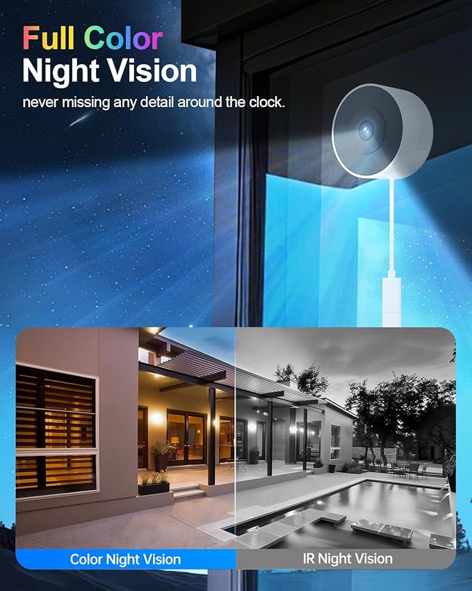 Window Camera-2K Security Camera for Baby/Pet/Elderly,WiFi Indoor Cameras for Home Security with Blacklight Full Color Night Vision,Human & Motion Detection,2-Way Audio,911 Alert,24/7 Recording (2PCS)